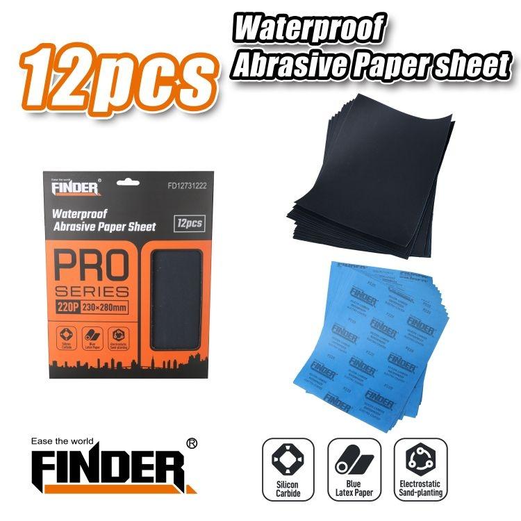 Αδιάβροχα φύλλα λείανσης, σετ 12 τεμάχια, της νέας σειράς Finder Max Series, υψηλής ποιότητας και αντοχής. Υλικό: Latex Paper+CarborundumΔιαστάσεις: 230*280mmGrit: 220#