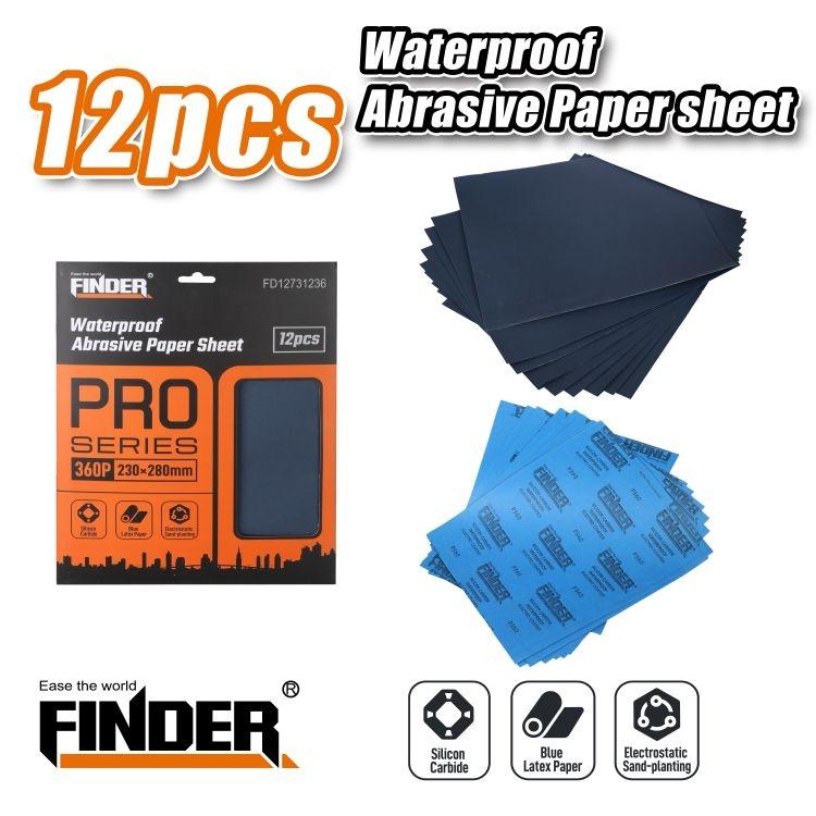 Αδιάβροχα φύλλα λείανσης, σετ 12 τεμάχια, της νέας σειράς Finder Max Series, υψηλής ποιότητας και αντοχής. Υλικό: Latex Paper+CarborundumΔιαστάσεις: 230*280mmGrit: 360#