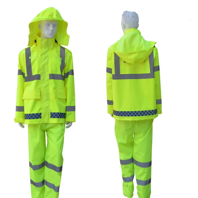 Αδιάβροχη φόρμα με κουκούλα, One Sized, σε κίτρινο φωσφοριζέ χρώμα με ανακλαστικές λωρίδες στο επάνω και κάτω μέρος.Κατασκευασμένη από υψηλής ποιότητας, ανθεκτικό, αδιάβροχο υλικό, με άνετη εφαρμογή.Καλύπτει μέχρι XL.