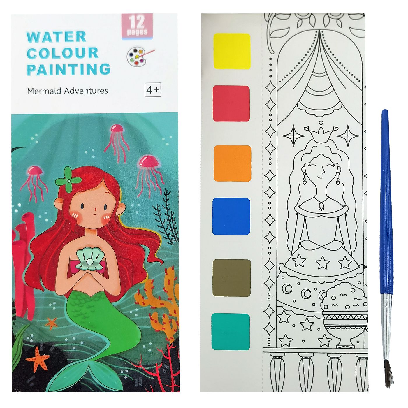 Σετ=μπλοκ 12 φύλλων χρωματισμού & πινέλο ‘κάθε φύλλο περιέχει νερομπογιές 19x8cm