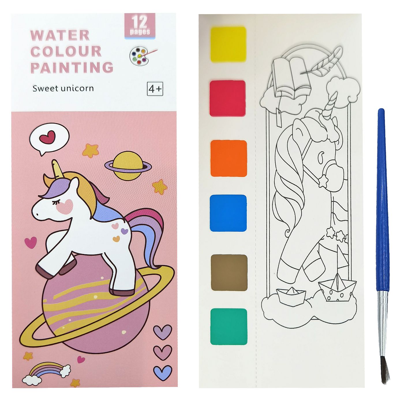 Σετ=μπλοκ 12 φύλλων χρωματισμού & πινέλο ‘κάθε φύλλο περιέχει νερομπογιές 19x8cm