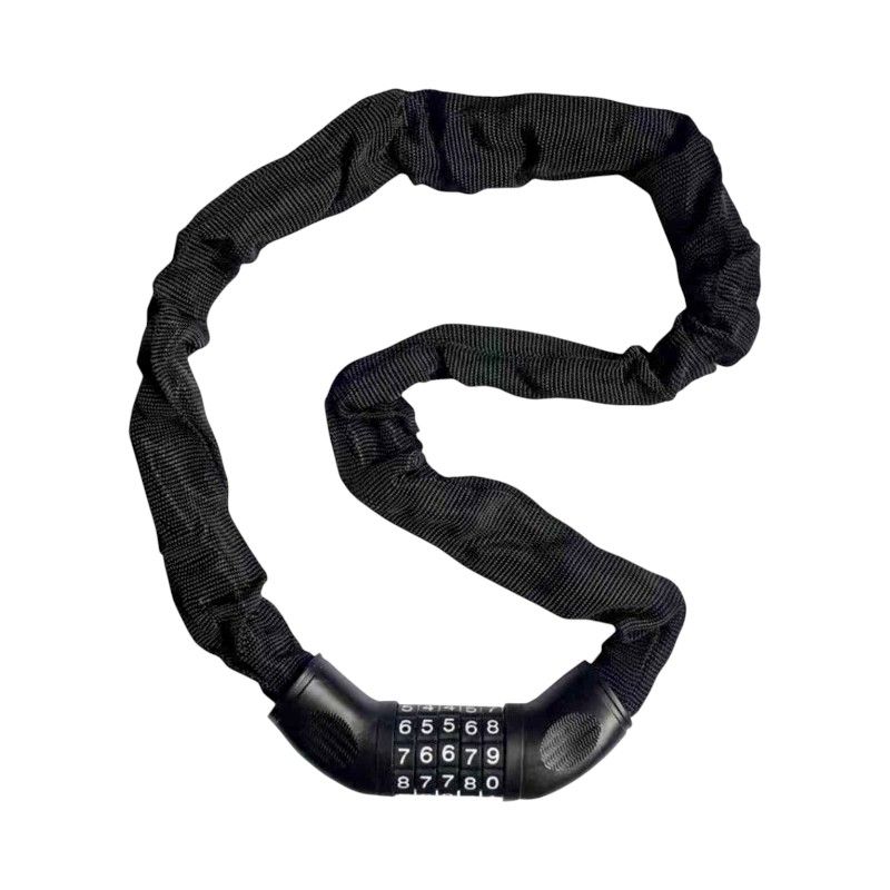 Αλυσίδα κλειδώματος ποδηλάτου με κωδικό ασφαλείας 5 ψηφίων, ατσάλινη, με υφασμάτινη προστατευτική επένδυση για να μην χαράζει την ζάντα.Μήκος: 80cm