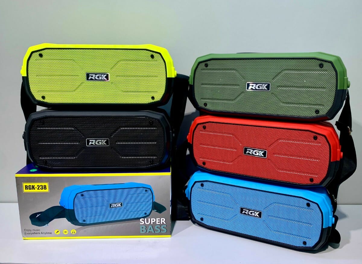 Ασύρματο ηχείο Bluetooth RGK238 με υψηλής ποιότητας ήχο και λουράκι για εύκολη μεταφορά.Χαρακτηριστικά:Ισχύς: 12WΜέγεθος ηχείου: 78mmBluetooth 5.0Μπαταρία: 1800mAh / 3.7VΧρόνος φόρτισης: 3 ώρεςΧρόνος λειτουργίας: έως 4 ώρεςΤάση φόρτισης: 5V / 1AΣυχνότητα: 90Hz-20KHzSNR: 80dbΔιαστάσεις: 30 x 9.5 x 12cm