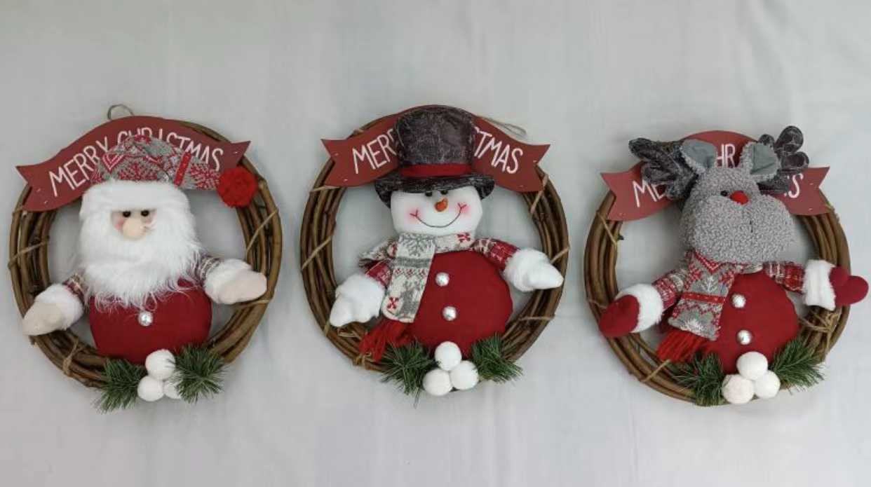 Χριστουγεννιάτικο ξύλινο διακοσμητικό στεφάνι διαμέτρου 30cm, με λούτρινη φιγούρα και στολίδια.Μπορεί να ταιριάξει παντού και να προσδώσει ένα χαριτωμένο γιορτινό τόνο σε κάθε χώρο.Διαθέτει κρεμάστρα.*Διαθέσιμο σε 3 σχέδια – Αποστολή σχεδίου κατόπιν διαθεσιμότητας.