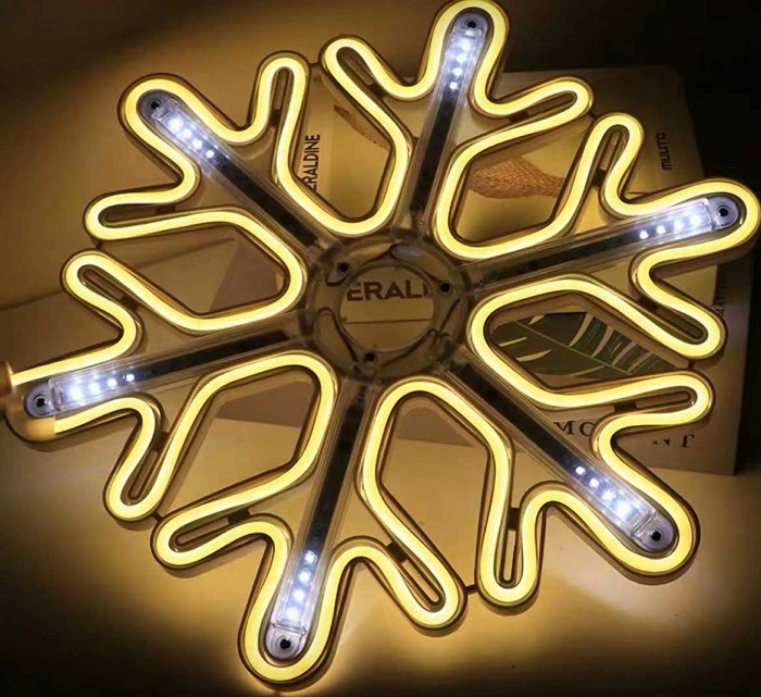 Χριστουγεννιάτικο φωτεινό διακοσμητικό σε σχέδιο Χιονονιφάδα με φωτοσωλήνα LED Neon και ενδιάμεσα φωτάκια με γραμμική κίνηση που δημιουργούν ένα εντυπωσιακό εφέ φωτισμού.Χρώμα φωτισμού: Cool White – Ψυχρό λευκόΤροφοδοσία: πρίζα ρεύματοςΣτεγανότητα: IP44Διαστάσεις: 30 x 30cm.Μήκος καλωδίου: 2m.