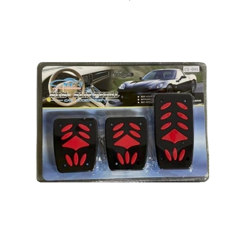 Διακοσμητικά καλύμματα πεντάλ αυτοκινήτου με σχέδιο. Θα προσδώσουν στυλ και θα αναβαθμίσουν την εμφάνιση του αυτοκινήτου σας ενώ θα διευκολύνουν την οδήγησή σας χάρη στον εργονομικό σχεδιασμό με αντιολισθητική επιφάνεια και λεπτομέρειες από ανθεκτικό συμπαγές καουτσούκ. Εύκολη και σταθερή τοποθέτηση με κλιπ.Σετ 3 τεμαχίων ειδικά σχεδιασμένα για γκάζι/φρένο/συμπλέκτη.