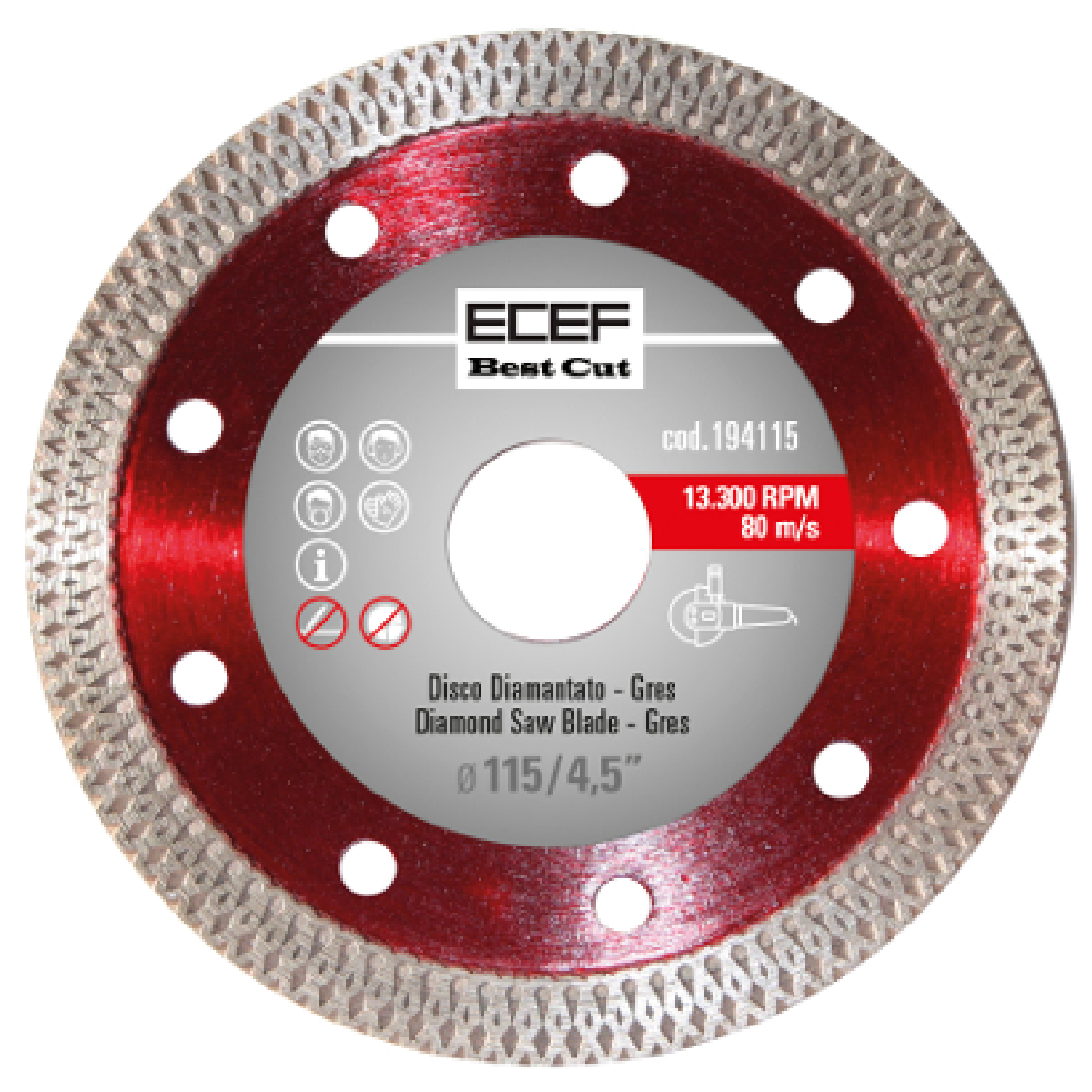 Ο δίσκος διαμαντέ Pro Gres λεπτός 115mm είναι κατασκευασμένος ειδικά για ημιπορσελάνη, παρέχοντας επαγγελματική ποιότητα και λεπτή κοπή. Κατάλληλος για χρήση σε ποικίλα υλικά όπως ημιπορσελάνη, πυρίμαχα, τραβερτίνες, κεραμίδια, σκληρά κεραμικά, πλακάκια και μάρμαρο, με δυνατότητα χρήσης τόσο σε υγρή όσο και σε ξηρή κατάσταση. Η κοπή με νερό αυξάνει τη διάρκεια ζωής του δίσκου.