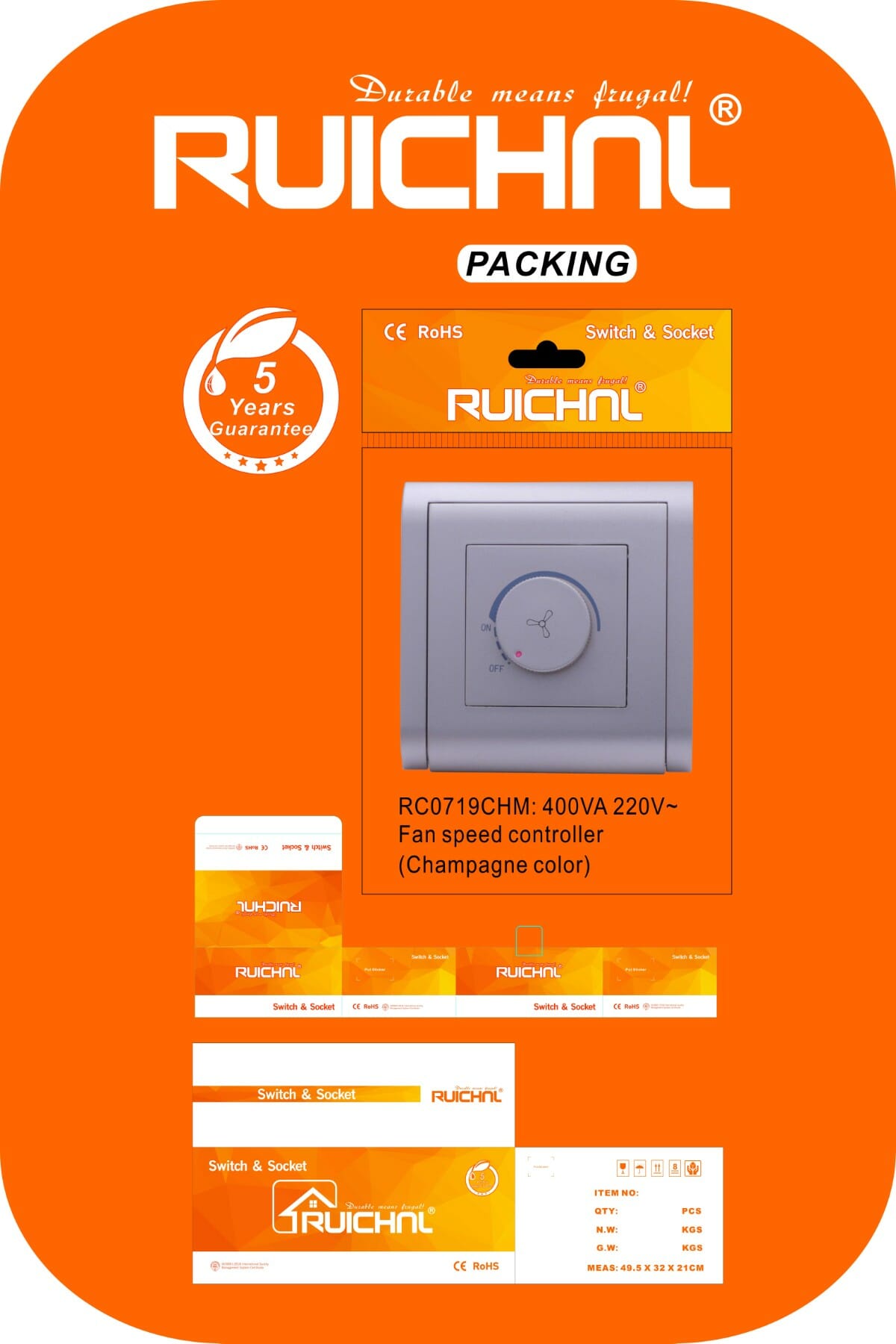 Εντοιχιζόμενος ρυθμιστής στροφών αέρα – 400VA – 220V, το πακέτο διαθέτει όλα τα απαιτούμενα μέρη για εύκολη και ασφαλή εγκατάσταση.Χρώμα: Μπεζ Champagne