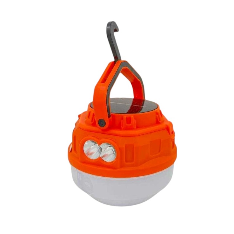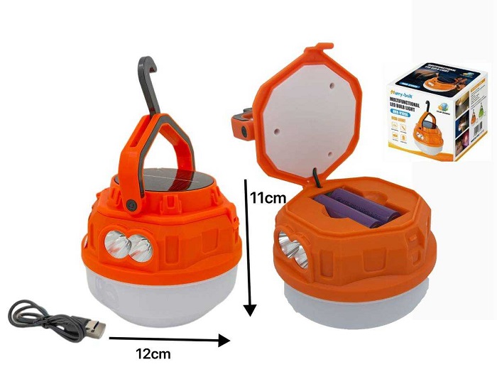 Επαναφορτιζόμενη λάμπα LED με γαντζάκι/κρεμάστρα και ηλιακό πάνελ για έξτρα αυτονομία μπαταρίας, ιδανική για το camping, την παραλία, τον κήπο, την βεράντα και οπουδήποτε χρειάζεστε άμεσα οικονομικό φωτισμό χωρίς πρόσβαση σε ρεύμα. Διπλός φωτισμός με λάμπα και φακό LED.Πρακτικός σχεδιασμός με πτυσσόμενο γάντζο-κρεμάστρα ή επιτραπέζια τοποθέτηση ως φαναράκι. 2 x επαναφορτιζόμενες μπαταρίες 18650Φόρτιση 2 τρόπων:USB καλώδιο (περιλαμβάνεται)Ηλιακή φόρτιση με τοποθέτηση έως 6 ώρες σε ηλιοφάνειαΑυτονομία μπαταρίας έως 4 ώρες. Ανθεκτικό περίβλημα ABSΔιαστάσεις 11 x 12 cm.