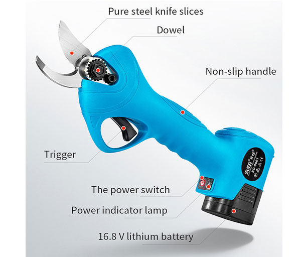 Ηλεκτρικό φορητό κοπτικό κήπου – SC-8601 με εργονομική σχεδίαση και μεγάλη αυτονομία μπαταρίας.Χαρακτηριστικά:Λεπίδα από ανοξείδωτο ατσάλι, ανθεκτική σε συνεχή, σκληρή χρήσηΑντιολισθητική λαβήΔιάμετρος κοπής: έως 25mmΜπαταρία Λιθίου DC16.8V, 2000mAhΑυτονομία μπαταρίας: έως 4 ώρες (Περιλαμβάνονται 2 μπαταρίες – Συνολικός χρόνος χρήσης έως 8 ώρες)Χρόνος φόρτισης: 2 ώρεςΦωτεινή λυχνία λειτουργίαςΔιαστάσεις κοπτικού: 28 x 9cmΒάρος κοπτικού: 0.95kgΔιαστάσεις συσκευασίας: 30 x 23 cm