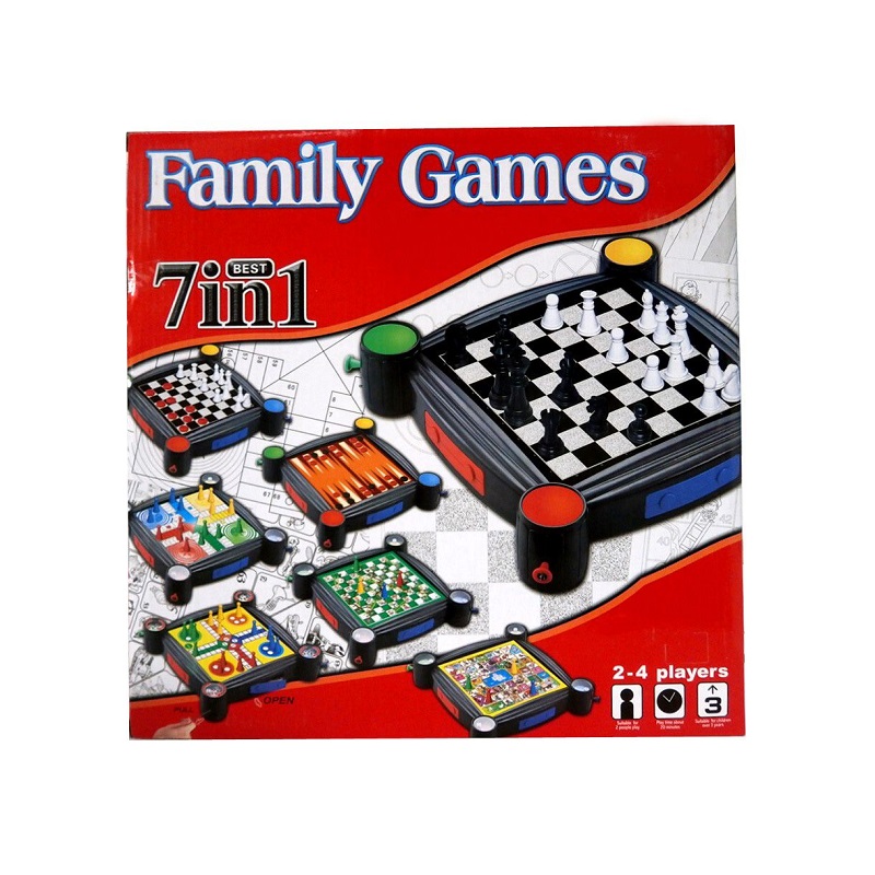 Σετ επιτραπέζιο παιχνίδι 7 σε 1 με Σκάκι-Τάβλι-Φιδάκι-Γκρινιάρη κα., με όλα τα απαραίτητα σύνεργα και αξεσουάρ για ατελείωτες ώρες παιχνιδιού με την όλη την οικογένεια ή τους φίλους σας!Για έως 4 παίκτες.Πληροί όλα τα πρότυπα ασφαλείας. Κατάλληλο για παιδιά ηλικίας 3 ετών και άνω.