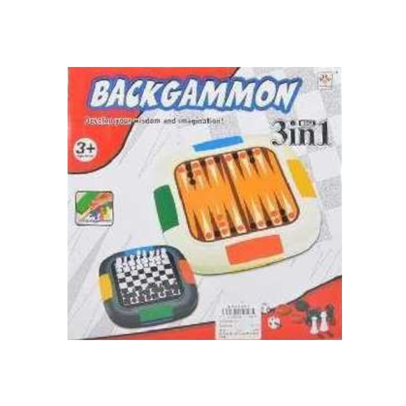Σετ επιτραπέζιο παιχνίδι, 3 σε 1 με Σκάκι-Τάβλι-Checkers, με όλα τα απαραίτητα σύνεργα και αξεσουάρ για ατελείωτες ώρες παιχνιδιού με την όλη την οικογένεια ή τους φίλους σας!Για έως 2 παίκτες.Πληροί όλα τα πρότυπα ασφαλείας. Κατάλληλο για παιδιά ηλικίας 3 ετών και άνω.