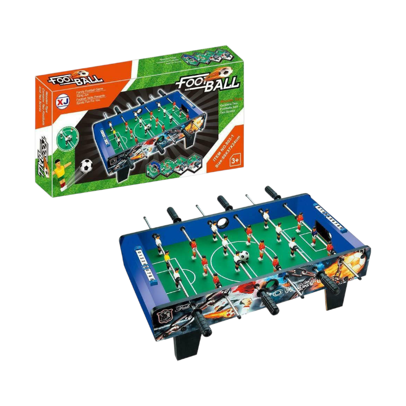 Επιτραπέζιο ποδοσφαιράκι ξύλινο, σε εντυπωσιακό σχεδιασμό που θα ξετρελάνει τους μικρούς και μεγάλους λάτρεις του αθλήματος. Στήσε το και ετοιμάσου για ένα συναρπαστικό παιχνίδι με πολλά γκολ!Διαστάσεις: 69 x 37 x 24cm.Πληροί όλα τα πρότυπα ασφαλείας. Κατάλληλο για παιδιά ηλικίας 6 ετών και άνω.