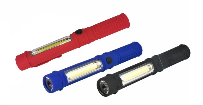 Φακός μπαταρίας LED ράβδος, με εργονομική σχεδίαση και με φωτισμό υψηλής ισχύος, κατάλληλος για κάθε είδους εργασία και δραστηριότητα. Διαθέτει 2 φακούς: μπροστινό και πλαϊνό φακό COB.Διαθέτει μαγνήτη στην κάτω πλευρά για εύκολη στήριξη σε μεταλλικές επιφάνειες και κλιπ τσέπης. Λειτουργεί με 3 μπαταρίες ΑAΑ (δεν περιλαμβάνονται) 250 LumensΜήκος: 18cm.