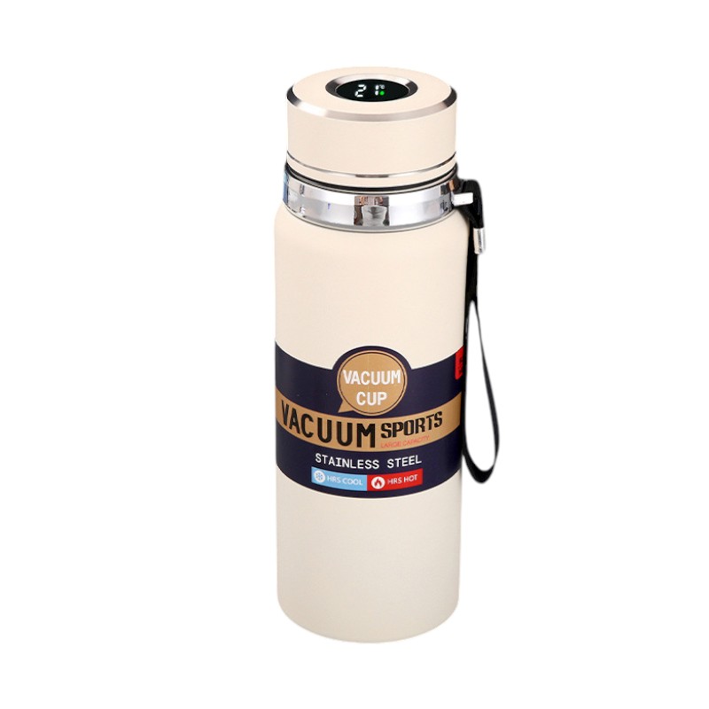 Φορητό παγούρι-θερμός με ψηφιακό θερμόμετρο που σας δείχνει τη στιγμιαία θερμοκρασία του περιεχομένου με ένα άγγιγμα. Με εσωτερικό από 100% ανοξείδωτο ατσάλι, διπλά τοιχώματα και περίβλημα υψηλής ανθεκτικότητας που διατηρεί τη θερμοκρασία του περιεχομένου σταθερή για ώρες. Το ανοξείδωτο ατσάλι εξασφαλίζει μεγάλη αντοχή στο χρόνο και απόλυτα υγιεινή χρήση χωρίς τις τοξικές ουσίες που περιλαμβάνουν τα κοινά πλαστικά παγούρια. Δεν απορροφάει γεύσεις και μυρωδιές. Διαθέτει βιδωτό καπάκι Vacuum και σίτα. Εργονομικός σχεδιασμός για εύκολη μεταφορά. Πλένεται πολύ εύκολα.Διαστάσεις: 19.5*8.2cm