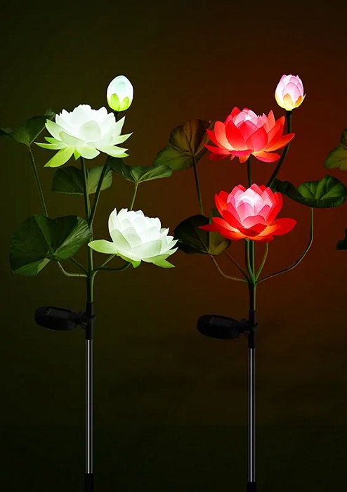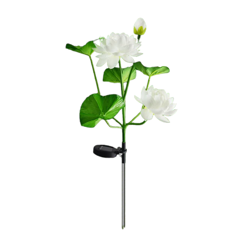 Φωτιζόμενα διακοσμητικά λουλούδια LED με ηλιακό πάνελ φόρτισης και ενσωματωμένη επαναφορτιζόμενη μπαταρία, ιδανικά διακοσμητικά για χρήση σε σημεία που δεν έχουν εύκολη πρόσβαση σε ηλεκτρικό ρεύμα, καθώς τοποθετούνται και χρησιμοποιούνται εξολοκλήρου ασύρματα. Περιλαμβάνουν ειδικό μεταλλικό πάσσαλο για εύκολη και σταθερή τοποθέτηση στο χώμα του κήπου σας ή σε γλάστρα. Σετ 2 τεμαχίων. Χρόνος φόρτισης: 8 ώρες σε ηλιοφάνειαΑυτονομία: έως 10 ώρες φωτισμούΜπαταρία NiMH 600mah.Ηλιακό πάνελ 2V 140mAΚουμπί ON/OFFΣτεγανότητα: IP65Συνολικό μήκος (με τον πάσσαλο): 75cmΠεριλαμβάνονται 2 τεμάχια.