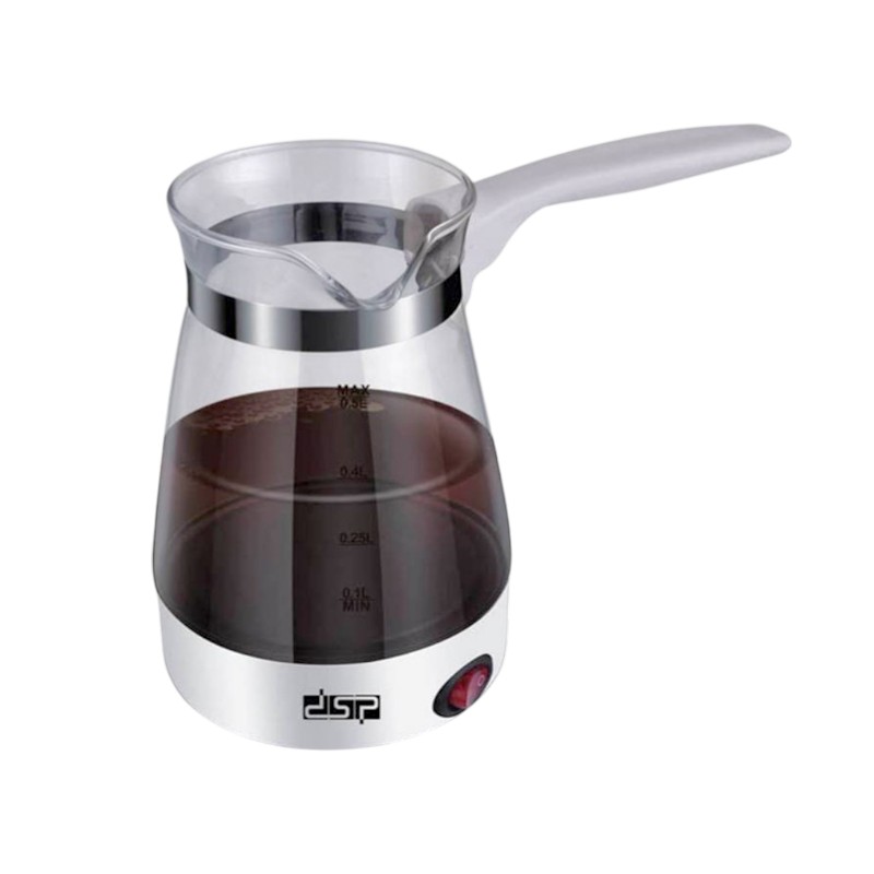Γυάλινο ηλεκτρικό μπρίκι της DSP για ελληνικό καφέ και ζεστό νερό, εύχρηστο και πρακτικό, μεγάλης χωρητικότητας, για να έχετε άμεσα έτοιμο τον αγαπημένο σας ελληνικό καφέ ή να βράσετε νερό σε λίγα λεπτά.Χαρακτηριστικά: Τάση: 220-240V~50/60Hz, Ισχύς: 600W, Χωρητικότητα: 500ml, Θερμαινόμενη βάση από ανοξείδωτο χάλυβα, Κόκκινη φωτεινή λυχνία ετοιμότητας, Μήκος καλωδίου: 70cm, Διαστάσεις: 15.5 x 10.5cm + 12.5cm χειρολαβή.Εμπεριέχονται οδηγίες χρήσης στα Αγγλικά.