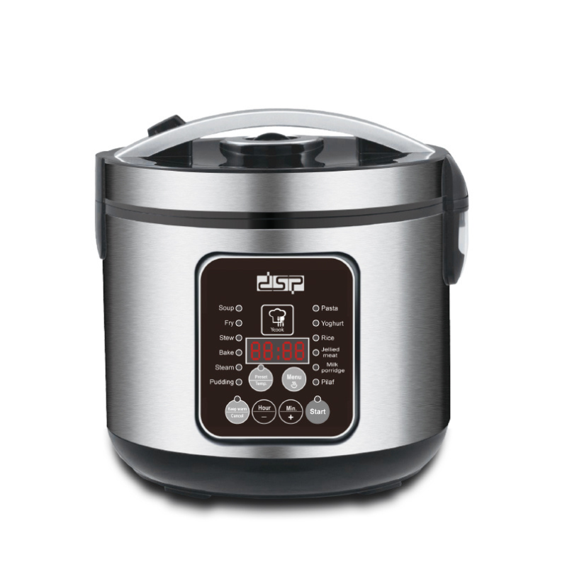 Αυτόνομος ηλεκτρικός πολυμάγειρας-χύτρα μερικής πίεσης, υψηλής ισχύος από την DSP, με ψηφιακή οθόνη LCD, αφαιρούμενο κάδο και ιδιαίτερα εύχρηστο προγραμματισμό. Υψηλής ποιότητας κατασκευή νέας γενιάς, ιδανική για γρήγορο, ποιοτικό και οικονομικό μαγείρεμα γευμάτων χωρίς να χρειάζεται να χρησιμοποιήσετε τον οικιακό ενεργοβόρο φούρνο σας.Χαρακτηριστικά: Υλικό: Ανοξείδωτο ατσάλι Χωρητικότητα: 5L Ισχύς: 700W Τάση: 220-240V Συχνότητα: 50-60Hz, Ψηφιακή οθόνη LCD, Χρονοδιακόπτης, 12 προεπιλογές μαγειρέματος, Ρυθμιζόμενη θερμοκρασία, Αφαιρούμενο-πλενόμενο εσωτερικό δοχείο 1mm με ενισχυμένη αντικολλητική επίστρωση.Εμπεριέχονται οδηγίες στα Αγγλικά και στα Κινέζικα.