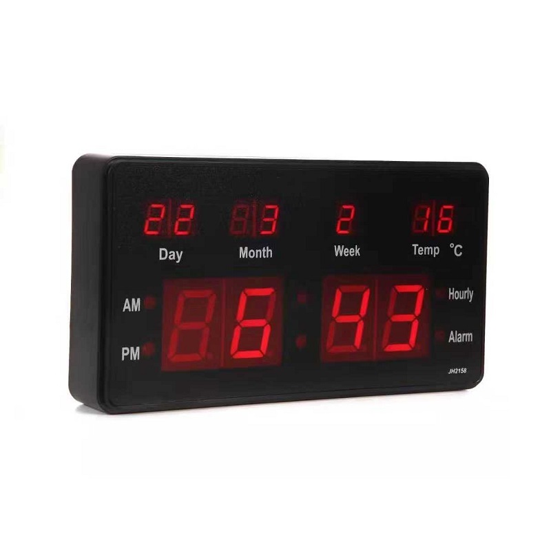 Ψηφιακή πινακίδα ρολόι – Θερμόμετρο – Ημερολόγιο με κόκκινο Led. Μικρό μέγεθος για τοποθέτηση είτε σε τοίχο είτε σε τραπέζι. Ευανάγνωστο από μεγάλη απόσταση. Απεικόνιση ώρας, λεπτών, ημερομηνίας, θερμοκρασίας.Τέσσερα μπουτόν στη πίσω πλευρά για ρύθμιση ώρας και ημερομηνίας. Διαθέτει ξυπνητήρι. Ενσωματωμένη μνήμη ώστε σε περίπτωση διακοπής ρεύματος να διατηρούνται τα στοιχεία.Πλαστική κατασκευή.Λειτουργία με adaptor 220V AC / 5V 500mAh (περιλαμβάνεται στη συσκευασία)Διαστάσεις: 20 x 11 x 4cm