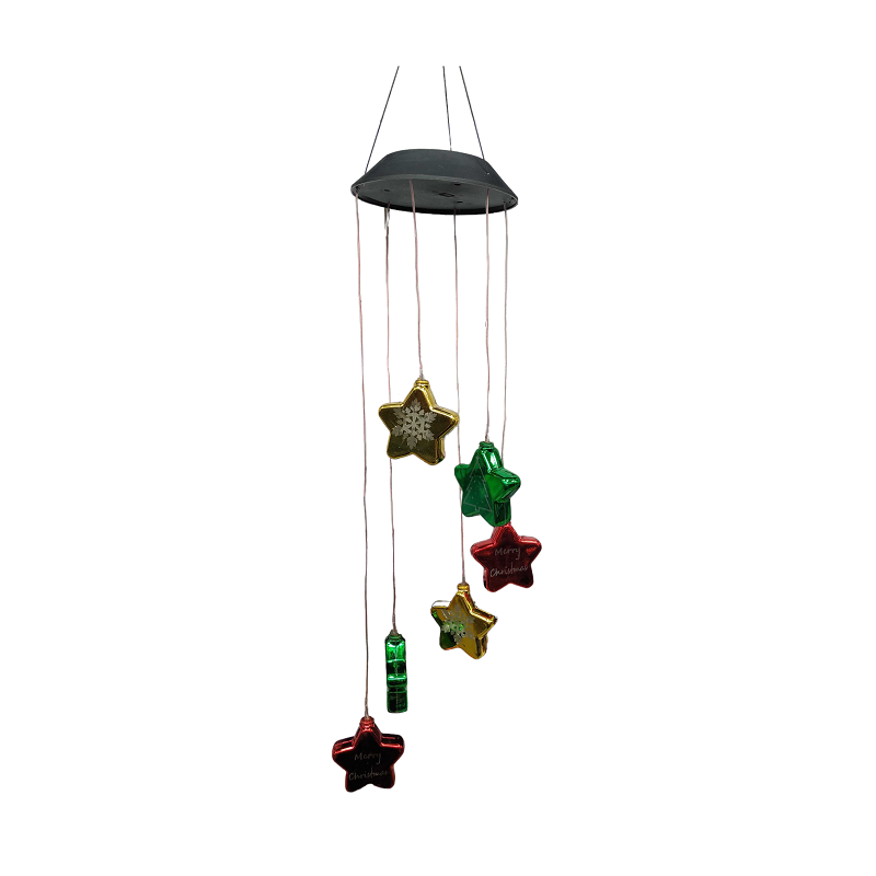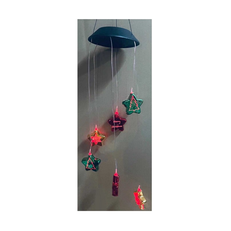 Κρεμαστό διακοσμητικό με πολύχρωμο φωτισμό LED.Διαθέτει ηλιακό πάνελ φόρτισης στο άνω μέρος και τοποθετείται άμεσα και εύκολα χωρίς περιττά καλώδια.Χαρακτηριστικά: Ηλιακό πάνελ: 2V 120MA polysiliciumΜπαταρία: 1.2V 600mah NI-MHΧρόνος φόρτισης: έως 8 ώρες σε ηλιοφάνεια.Αυτονομία μπαταρίας: έως 6 ώρες. Διαθέτει γάντζο/κρεμάστρα.Πλήκτρο On/Off.Διάμετρος κεντρικής μονάδας: 13cmΜήκος κλωστών: 53cm Συνολικό μήκος: 75cm