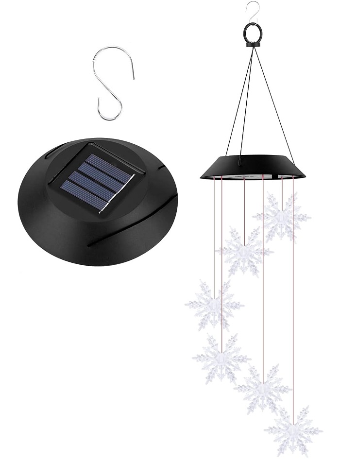 Κρεμαστό διακοσμητικό με πολύχρωμο φωτισμό LED RGB. Διαθέτει ηλιακό πάνελ φόρτισης στο άνω μέρος και τοποθετείται άμεσα και εύκολα χωρίς περιττά καλώδια.Χαρακτηριστικά: Ηλιακό πάνελ: 2V 120MA polysiliciumΜπαταρία: 1.2V 600mah NI-MHΧρόνος φόρτισης: έως 8 ώρες σε ηλιοφάνεια.Αυτονομία μπαταρίας: έως 6 ώρες. Διαθέτει γάντζο/κρεμάστρα.Πλήκτρο On/Off.Διάμετρος κεντρικής μονάδας: 13cmΜήκος κλωστών: 53cm Συνολικό μήκος: 75cm