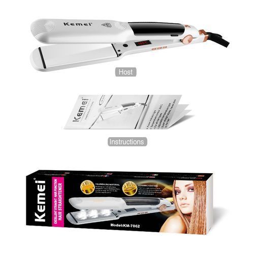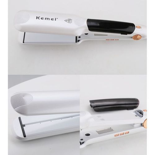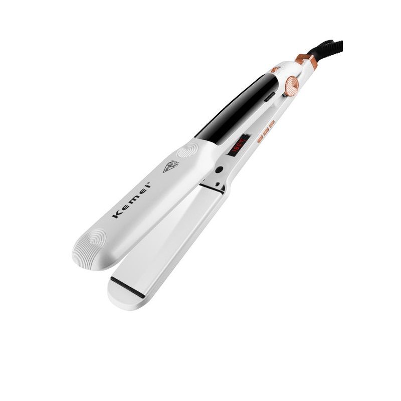 Ισιωτική μαλλιών Kemei με ατμό και κεραμικές πλάκες με τεχνολογία τουρμαλίνης που προστατεύει τα μαλλιά απ την θερμότητα και τη φθορά, για ένα λείο και λαμπερό αποτέλεσμα! Οι φαρδιές της πλάκες και η ταχύτατη θέρμανσή της σας βοηθούν να ολοκληρώσετε το χτένισμα σας σε ελάχιστο χρόνο.Διαθέτει ειδική θήκη νερού που κουμπώνει επάνω στη συσκευή και ειδικό δοχείο-απλικατέρ για την τοποθέτηση του νερού στη θήκη.Χαρακτηριστικά:Οθόνη ένδειξης θερμοκρασίαςΙσχύς: 80wΕύρος θερμοκρασίας: έως 220℃Χρόνος θέρμανσης: 30”Τάση: 100-240v 50. / 60hzΔιαστάσεις πλάκας: 11×4.5cmΔιαστάσεις συσκευής: 30 x 5 x 4.2 cmΜήκος καλωδίου: 1.2 m