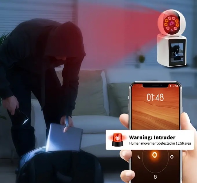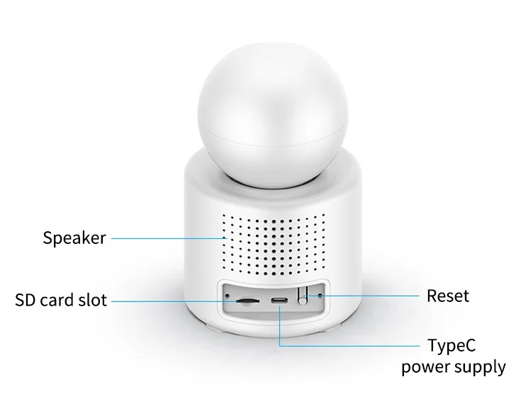 Αποθήκευση: Κάρτα TF (έως 128G – δεν περιλαμβάνεται) & Αποθήκευση Cloud, Ηχητικό alarm εκφοβισμού εισβολέων, Τροφοδοσία: καλώδιο USB (περιλαμβάνεται), Τάση: ≤36V,