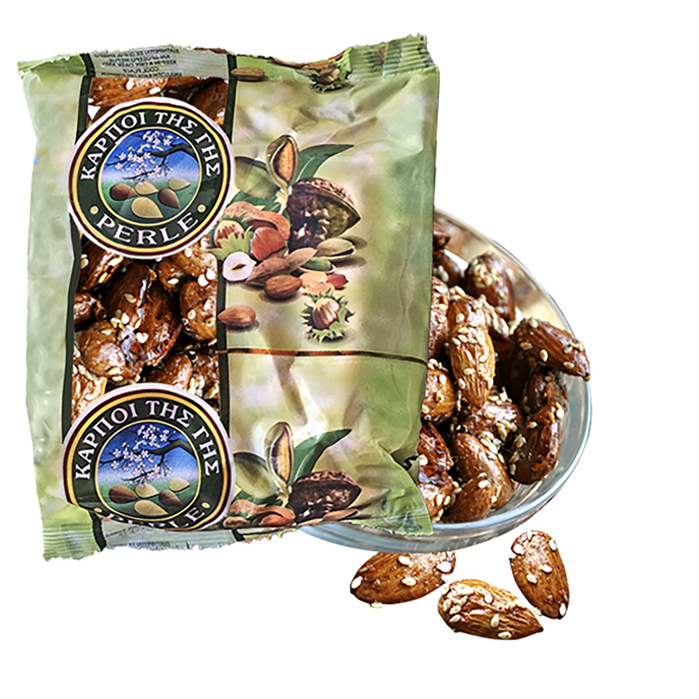 Σακ=100gr καραμελωμένο αμύγδαλο με σουσάμι
