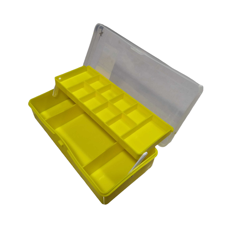 Πλαστικό κουτί-κασετίνα με 2 επίπεδα, ιδανικό για την αποθήκευση και μεταφορά των αξεσουάρ αλιείας σας, με πολλαπλές θήκες και διαχωριστικά.Διαστάσεις: 21 x 10 x 5.5 cm