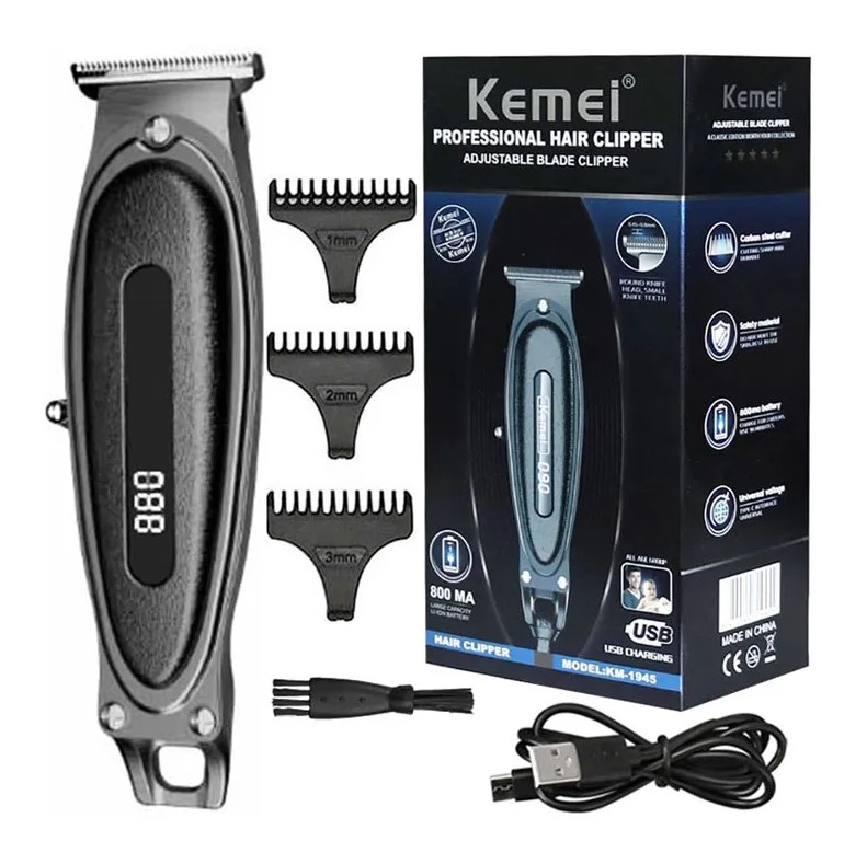 Κουρευτική μηχανή της εταιρίας Kemei, κατάλληλη για χρήση σε περιοχές όπως τα μαλλιά, τα γενιά και το σώμα. Λειτουργεί με καλώδιο.Χαρακτηριστικά:Φόρτιση με καλώδιο USBΜπαταρία 800 mAhΡυθμιζόμενη λεπίδαΔιαθέτει αξεσουάρ καθαρισμού και τροφοδοτικό.