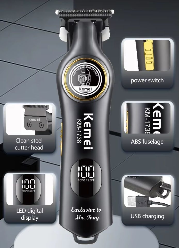 Επαναφορτιζόμενη κουρευτική μηχανή & trimmer σε εντυπωσιακό σχεδιασμό, με λεπίδα ακριβείας από ανοξείδωτο ατσάλι, με μεγάλη αυτονομία μπαταρίας, εργονομικό design και αξεσουάρ, κατάλληλη για κάθε είδους περιποίηση σε μαλλιά, γένια και σώμα. Χαρακτηριστικά: Ισχύς: 5W, Ταχύτητα 7200 RPMΨηφιακή οθόνη LED, Επαναφορτιζόμενη μπαταρία λιθίου 1200mAh, Χρόνος φόρτισης: 2 ώρες, Χρόνος λειτουργίας: 150 λεπτά, 3 χτενάκια για διαφορετικά μήκη κοπής (1/2/3mm),Λεπίδα από ανοξείδωτο ατσάλι, Διαστάσεις: 18 x 4 cm.Η συσκευασία περιλαμβάνει: 1 * Κουρευτική μηχανή1 * καλώδιο usb1 * Βούρτσα καθαρισμού1 * λαδάκι λίπανσης3 * χτενάκια, Οδηγίες χρήσης στα Αγγλικά.
