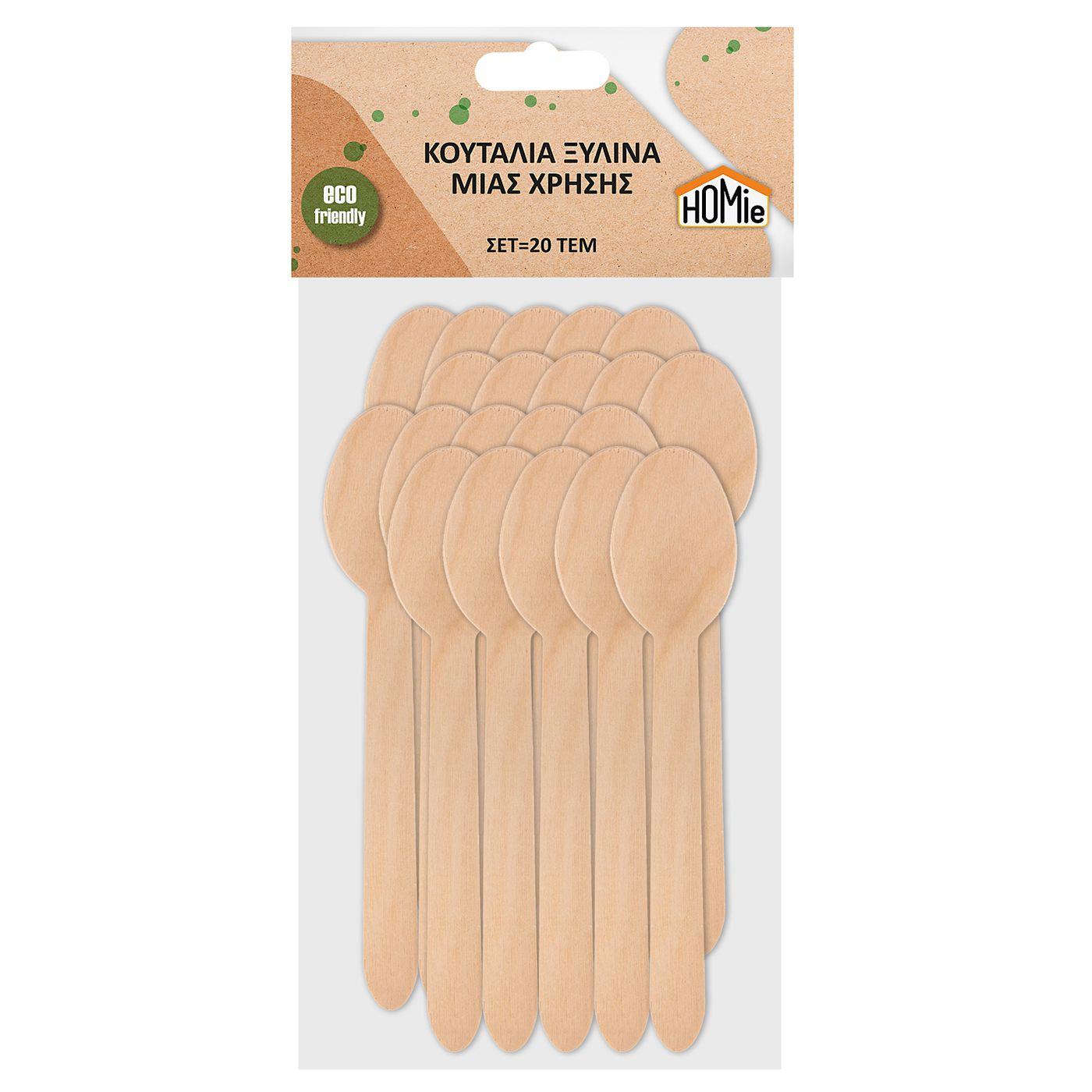 Κουτάλια Ξύλινα Μιας Χρήσης σετ=20 τεμ 16cm Homie 1002101