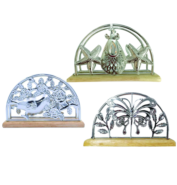 Μεταλλική χαρτοπετσετοθήκη με ξύλινη βάση 9 x 15cm
