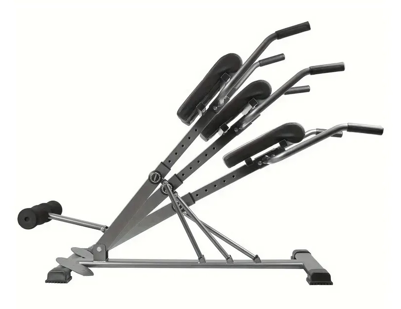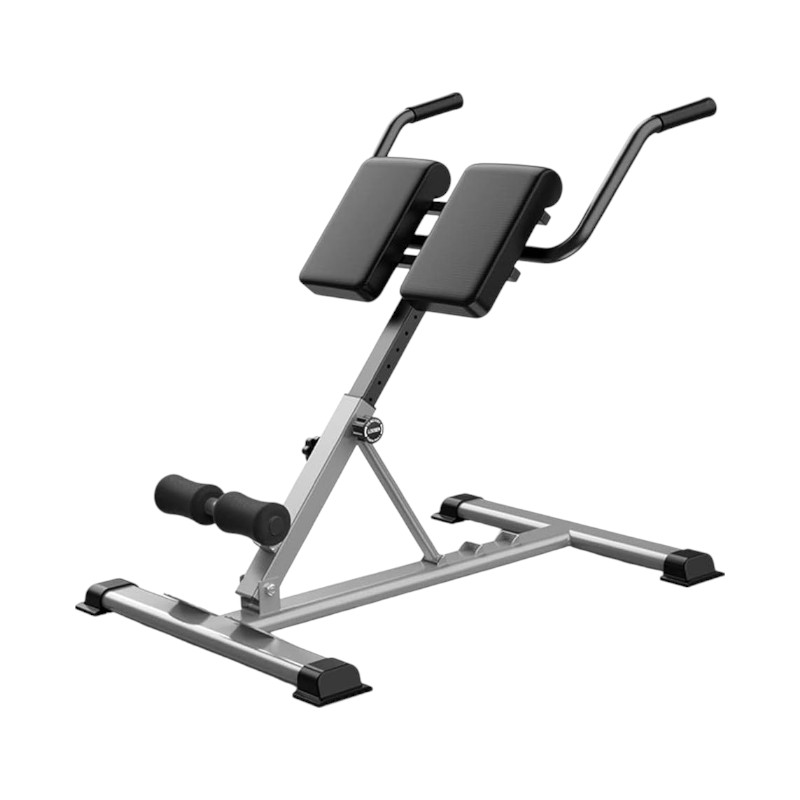 Πάγκος εκγύμνασης ραχιαίων ρυθμιζόμενος σε κλίση και ύψος για να ταιριάζει σε όλα τα αναστήματα.Ρυθμιζόμενο μήκος στηρίγματος ισχίων από 75-93 εκατοστά.3 γωνίες κλίσης του στηρίγματος στις 30, 40 και 50 μοίρες.Αντιολισθητικές θέσεις-κόντρες για τα πέλματα.Χειρολαβές στήριξης.Μαξιλάρι στήριξης της λεκάνης από πυκνό PU.Foam rollers για την στήριξη των ποδιών.Ελαστικά αντιολισθητικά πέλματα στις βάσεις για σταθερή στήριξη και προστασία του πατώματος.Αναδιπλούμενος για εύκολη αποθήκευση. Μέγιστο φορτίο: 110 κιλά.Διαστάσεις συσκευασίας: 106 x 43,5 x 15 cmΔιαστάσεις πάγκου: 104 x 58 x 93 cmΒάρος πάγκου: 10 kg.