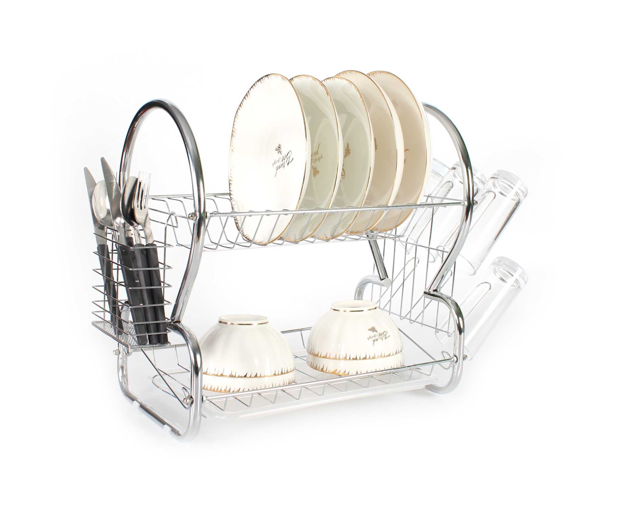 Πιατοθήκη αποστράγγισης διώροφη inox, σε πρακτικό σχεδιασμό, με θήκη μαχαιροπίρουνων. Διαθέτει πλαστική βάση συγκέντρωσης νερού. Διαστάσεις (Μ-Υ-Π): 54 x 38 x 25cm.