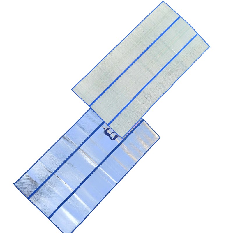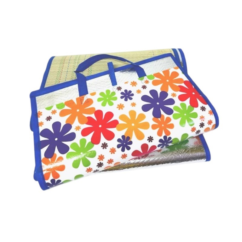 Ψάθα παραλίας πλαστική με μεταλλιζέ επένδυση στην μία πλευρά, που αντανακλά τη θερμότητα και προσφέρει υψηλή ανθεκτικότητα. Διπλώνεται πανεύκολα σε μορφή τσάντας με χειρολαβές, για εύκολη μεταφορά και αποθήκευση. Διαστάσεις: 170 x 150cm.*Διαθέσιμη σε ποικιλία σχεδίων – Αποστολή σχεδίου κατόπιν διαθεσιμότητας.