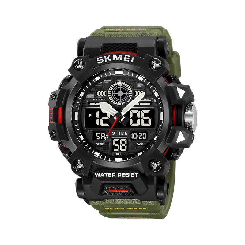 Ψηφιακό ρολόι χειρός Skmei με εξαιρετικό σπορ design και στυλ που ταιριάζει σε κάθε ύφος και διάθεση. Χαρακτηριστικά: Άνετη εφαρμογή, Αντοχή υγρασίας, Καπάκι μπαταρίας από ανοξείδωτο ατσάλι, Μήκος λουριού: 25cm, Διάμετρος καντράν: 52mm, Πάχος καντράν: 19mm, Backlight, Βασικές λειτουργίες: Alarm, Ημερομηνία, Ώρα, Χρονομέτρηση.