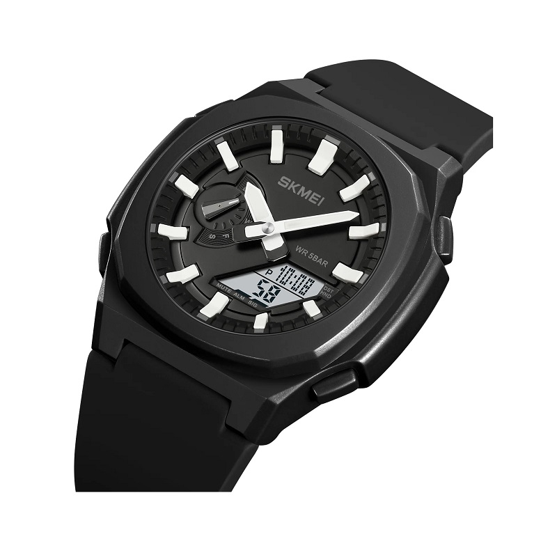 Ψηφιακό-αναλογικό ρολόι χειρός Skmei με εξαιρετικό design και στυλ που ταιριάζει σε κάθε ύφος και διάθεση.Χαρακτηριστικά: Άνετη εφαρμογή, Αντοχή υγρασίας, Καπάκι μπαταρίας από ανοξείδωτο ατσάλι, Μήκος λουριού: 23cm, Πλάτος καντράν: 45.7mm, Πάχος κάσας: 14mm, Backlight, Βασικές λειτουργίες: Ημερομηνία, Ώρα, Χρονομέτρηση.