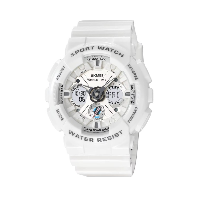 Ψηφιακό/αναλογικό ρολόι χειρός Skmei με εξαιρετικό σπορ design και στυλ που ταιριάζει σε κάθε ύφος και διάθεση.Χαρακτηριστικά:Άνετη εφαρμογήΑντοχή υγρασίαςΚαπάκι μπαταρίας από ανοξείδωτο ατσάλιΜήκος λουριού: 25cmΔιάμετρος καντράν: 51.3mm (με την κάσα)Πάχος καντράν: 18.8mmBacklightΒασικές λειτουργίες: Double Time 12/24h, Alarm, Ημερομηνία, Ώρα.