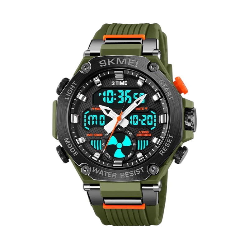 Ψηφιακό/αναλογικό ρολόι χειρός Skmei με εξαιρετικό σπορ design και στυλ που ταιριάζει σε κάθε ύφος και διάθεση.Χαρακτηριστικά:Άνετη εφαρμογήΑντοχή υγρασίαςΚαπάκι μπαταρίας από ανοξείδωτο ατσάλιΜήκος λουριού: 25cmΔιάμετρος καντράν: 50mm (με την κάσα)Πάχος καντράν: 16.5mmBacklightΒασικές λειτουργίες: Double Time 12/24h, Alarm, Ημερομηνία, Ώρα, Αντίστροφη μέτρηση.