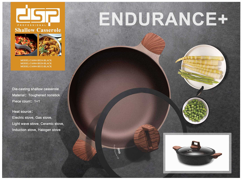 Ρηχή κατσαρόλα υψηλής ποιότητας κατασκευής από την DSP, με ισχυρή αντικολλητική επίστρωση και γυάλινο καπάκι. Διαθέτει τεχνολογία άμεσης θέρμανσης και ομοιόμορφης κατανομής θερμότητας για ένα εύκολο και ποιοτικό μαγείρεμα.Χαρακτηριστικά:Διαστάσεις: 28 x 7.5cmΧωρητικότητα: 3.9LΑντικολλητική επίστρωση υψηλής αντοχής και εύκολο καθάρισμα, Γυάλινο καπάκι με χερούλιΧερούλια μεταφοράς με θερμομόνωσηΚατάλληλη για πλυντήριο πιάτων, ηλεκτρικό φούρνο και όλα τα είδη εστιών.