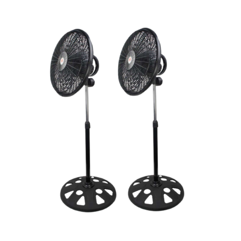 Ισχυρός ανεμιστήρας δαπέδου, διαμέτρου 45cm. Διαθέτει 3 επιλογές ρύθμισης έντασης αέρα, ρυθμιζόμενο ύψος και λειτουργία περιστροφής. Περιστροφή 360 μοίρες. Είναι αθόρυβος και ιδιαίτερα οικονομικός στην κατανάλωση ρεύματος, με ισχύ 80W. Τάση: 220V/50Hz.*Σετ 2 τεμαχίων.