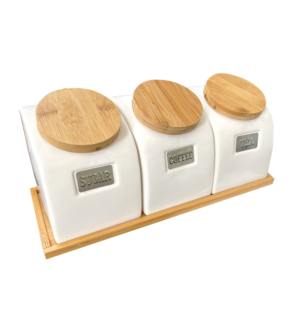 Σετ 3 κεραμικά βάζα για καφέ-ζάχαρη και τσάϊ με κωδικό
