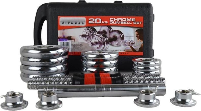 Πλήρες σετ αλτήρων σε βαλιτσάκι, μέγιστου βάρους 20 kg, με επιπρόσθετο τμήμα που βιδώνει στους αλτήρες και μετατρέπεται πολύ εύκολα σε μπάρα. Πολυλειτουργικό, σας παρέχει τη δυνατότητα μεγάλης ποικιλίας ασκήσεων, κυρίως του άνω κορμού, χεριών, στήθους και πλάτης, ιδανικό για αρχάριους και προχωρημένους. Το σετ περιλαμβάνει: