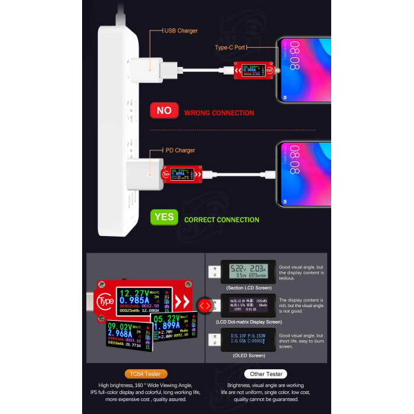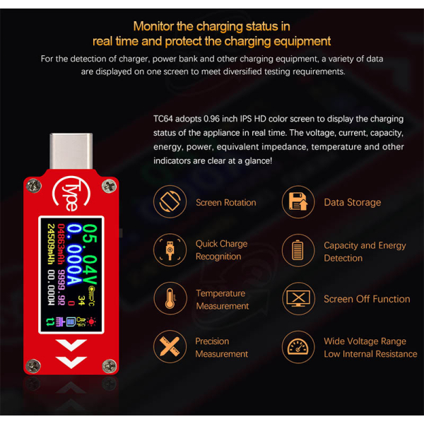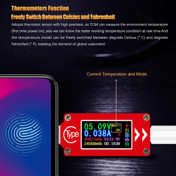 TESTER TYPE C CHARGING FOR VOLT/AMPER/POWER/TEMPERATURE