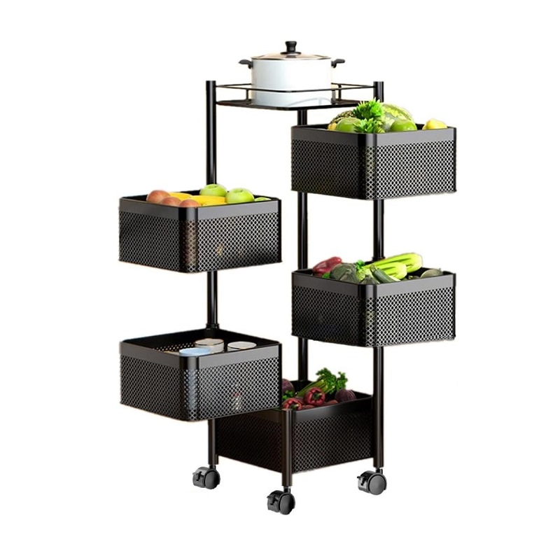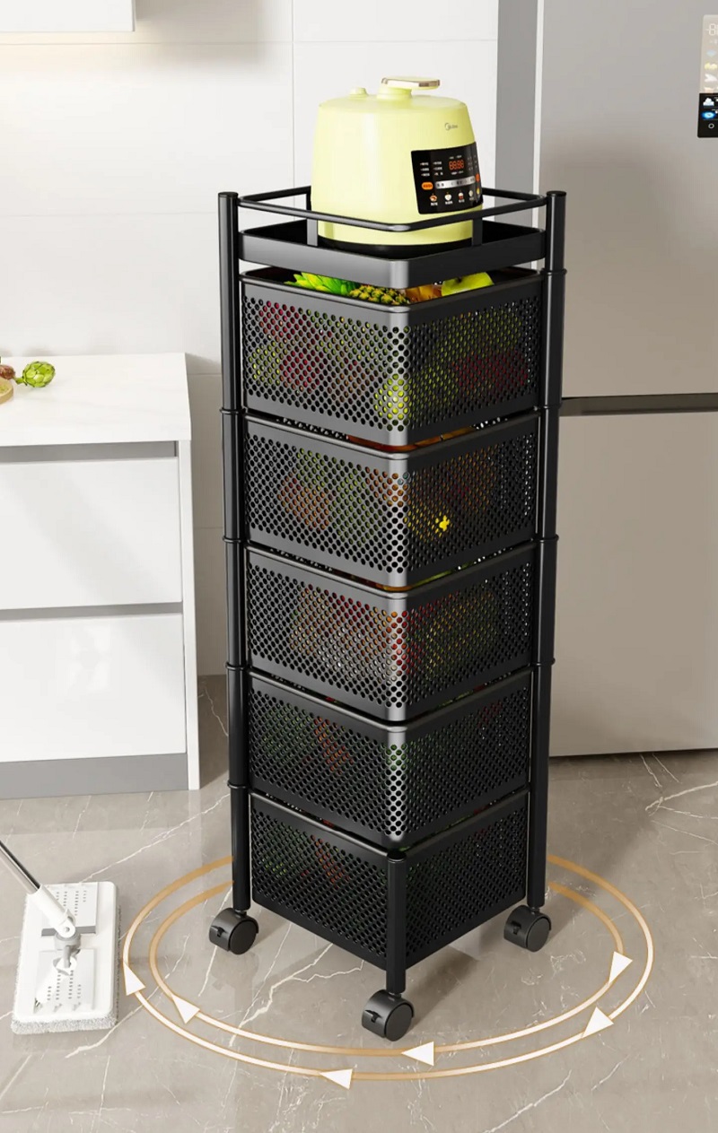 Μεταλλική ραφιέρα με 5 τετράγωνα ράφια και 4 ρόδες για εύκολη μετακίνηση. Εργονομικός σχεδιασμός με πτυσσόμενα ράφια που ανοίγουν στο πλάι για εξοικονόμηση χώρου και εύκολη καθημερινή χρήση, με ράφια μεγάλης χωρητικότητας και περιστρεφόμενες ρόδες 360° με στοπ ασφαλείας. Ιδανική για την κουζίνα, την αποθήκη, το μπαλκόνι σας ή οποιοδήποτε χώρο επιθυμείτε. Διαστάσεις: Ύψος: 95cm – Ράφι: 26 x 26 x 14cm.