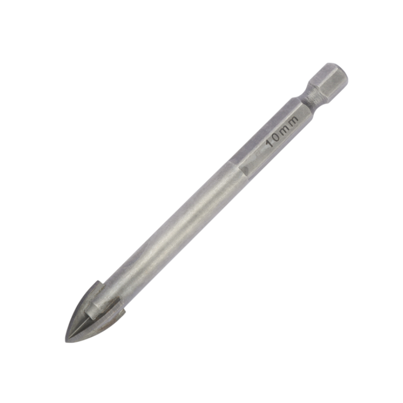 Τρυπάνι τετράκοπο γυαλιού και πλακιδίων της Finder, κατασκευασμένο από ατσάλι #45 Carbon Steel. Μέγεθος: 10mm.