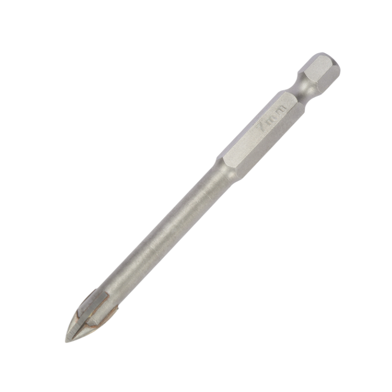 Τρυπάνι τετράκοπο γυαλιού και πλακιδίων της Finder, κατασκευασμένο από ατσάλι #45 Carbon Steel. Μέγεθος: 7mm.