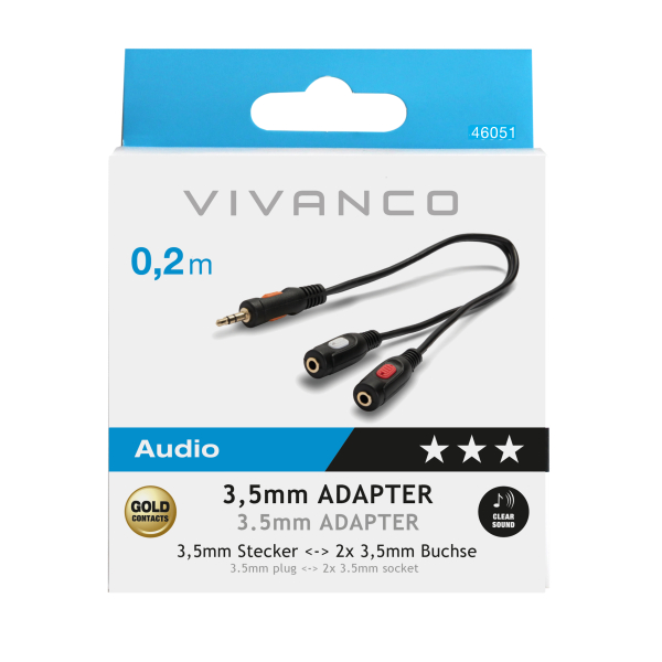 VIVANCO AUDIO CONNECTION CABLE 3.5mm TO 2X 3.5mm GOLD PLATED 0.2m
