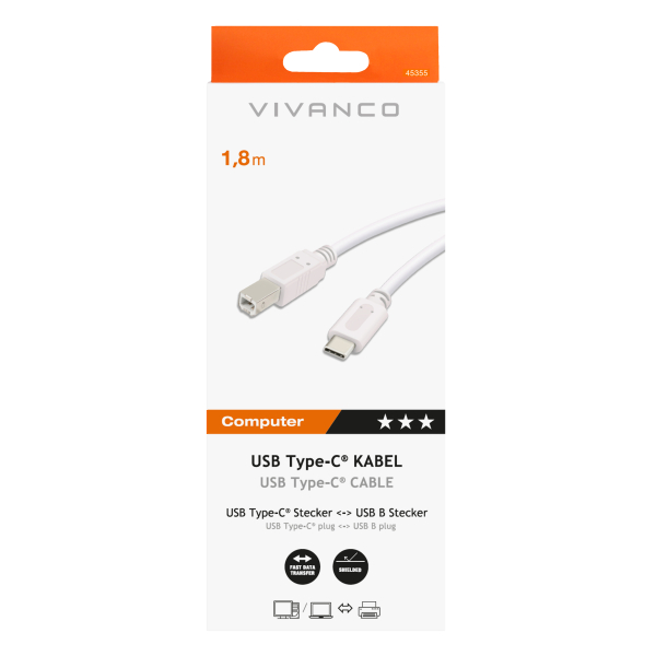 * High-quality processed and shielded USB-C printer cable